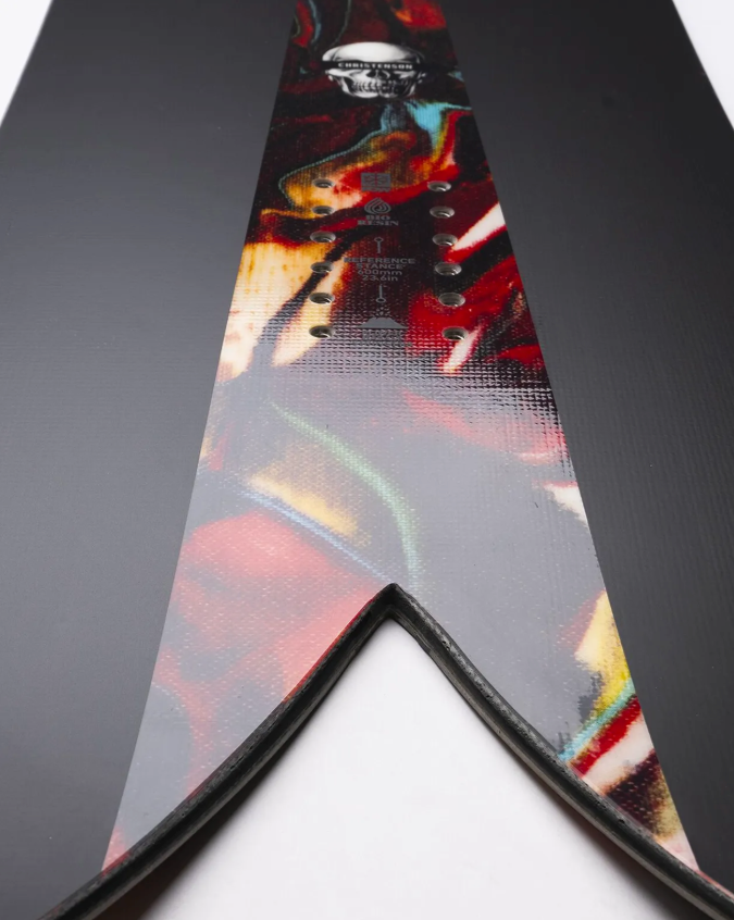 Christenson Surf Camber / Rocker - Eine erhöhte Nose und ein erhöhtes Tail sorgen für exzellenten Auftrieb und eine einfache Schwungeinleitung, während der Camber in der Mitte des Boards Power und Pop für ein reaktionsfreudiges Snowboarding-Erlebnis liefert.