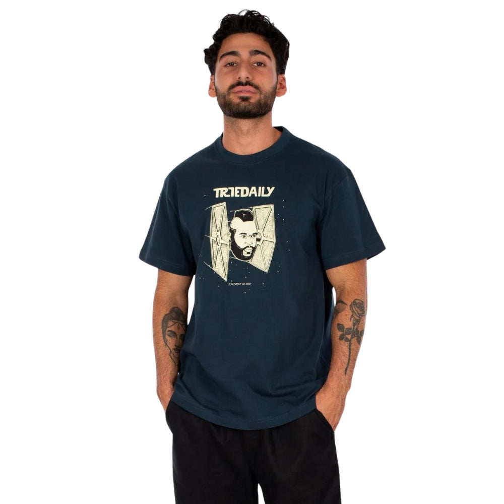 Weißt du, was das Beste an Science Fiction ist? In der Fantasie ist wirklich alles möglich! Man kann sogar Elemente mit ähnlichen Namen kombinieren. GoodMood zeigt das mit dem Artwork für das Iriedaily T Fighter Tee. Sergeant Bosco Albert ("Bad attitude") Baracus, kurz für B.A. aus dem A-Team, sorgt schon für reichlich nostalgische Vibes. Das gefällt uns!