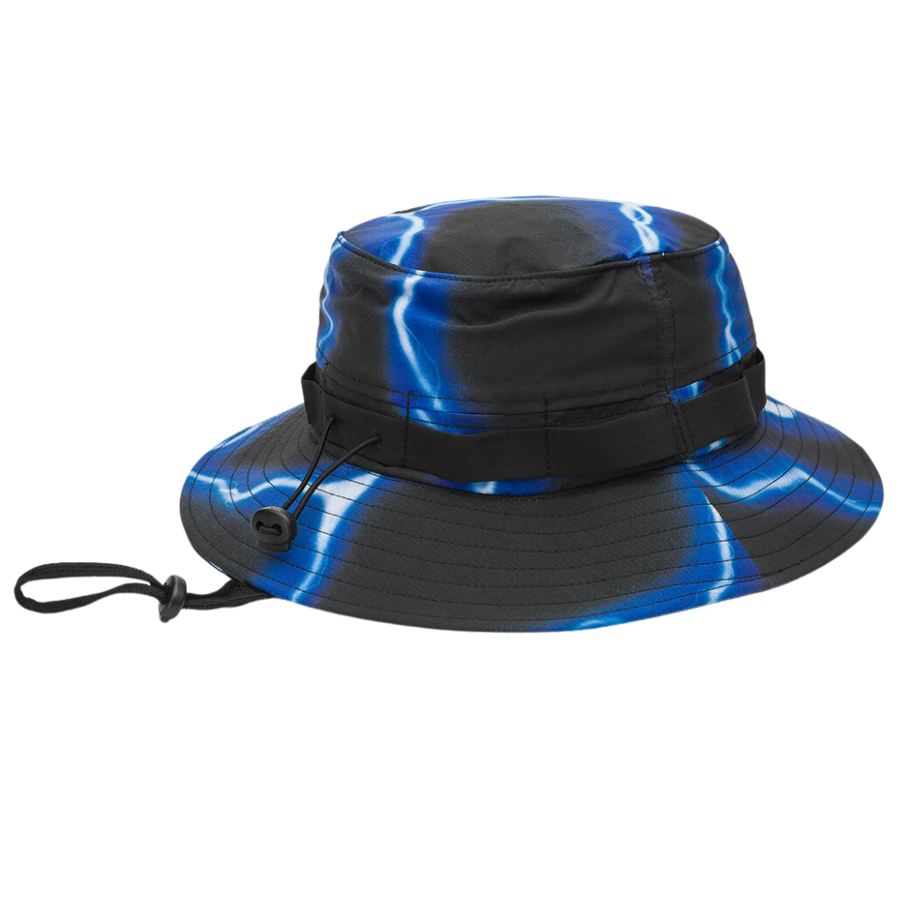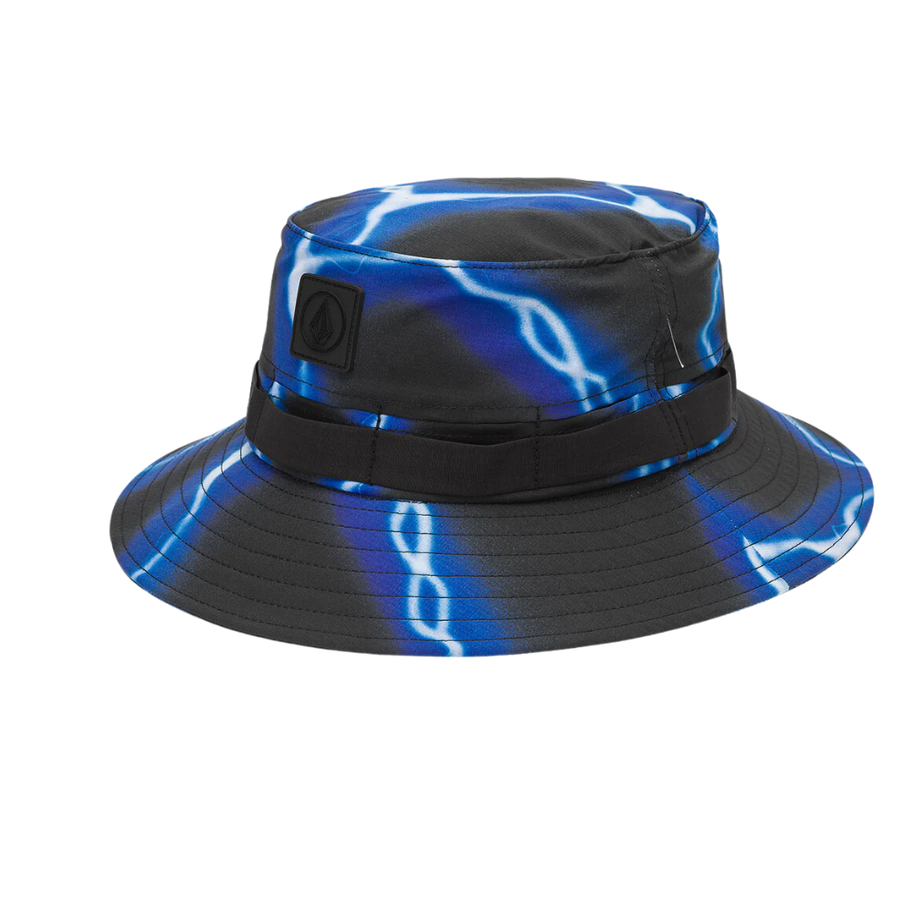 Die Volcom Featured Artist-Kollektion von Travis Spinks ist bekannt für ihre einzigartigen Airbrush-Designs, die bei Sammlern und Prominenten sehr begehrt sind, und zeigt einen auffälligen blauen Blitz-Print. Der Volcom T Spinks Boonie Bucket Hat besteht aus einem Mix hochwertiger Stoffe mit einem unstrukturierten Design, einem seitlichen Netzeinsatz und einem Kordelzug mit Stopper, perfekt für jedes Abenteuer.