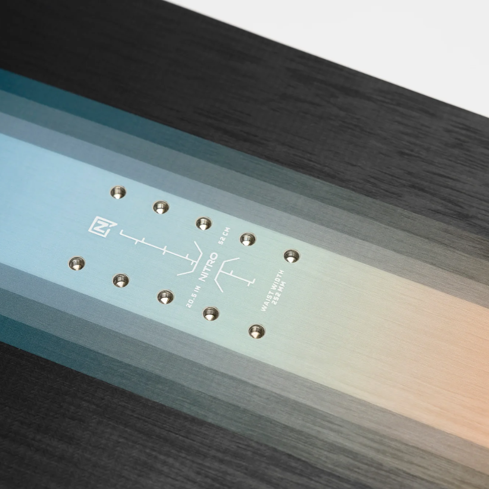 Das Nitro Team 2025 Snowboard wurde offiziell mit einem neuen Shape aufgewertet, der es noch vielseitiger macht. Die höhere Nose und das Tail sorgen für mehr Auftrieb an Powder-Tagen und mehr Kontrolle an normalen Tagen.