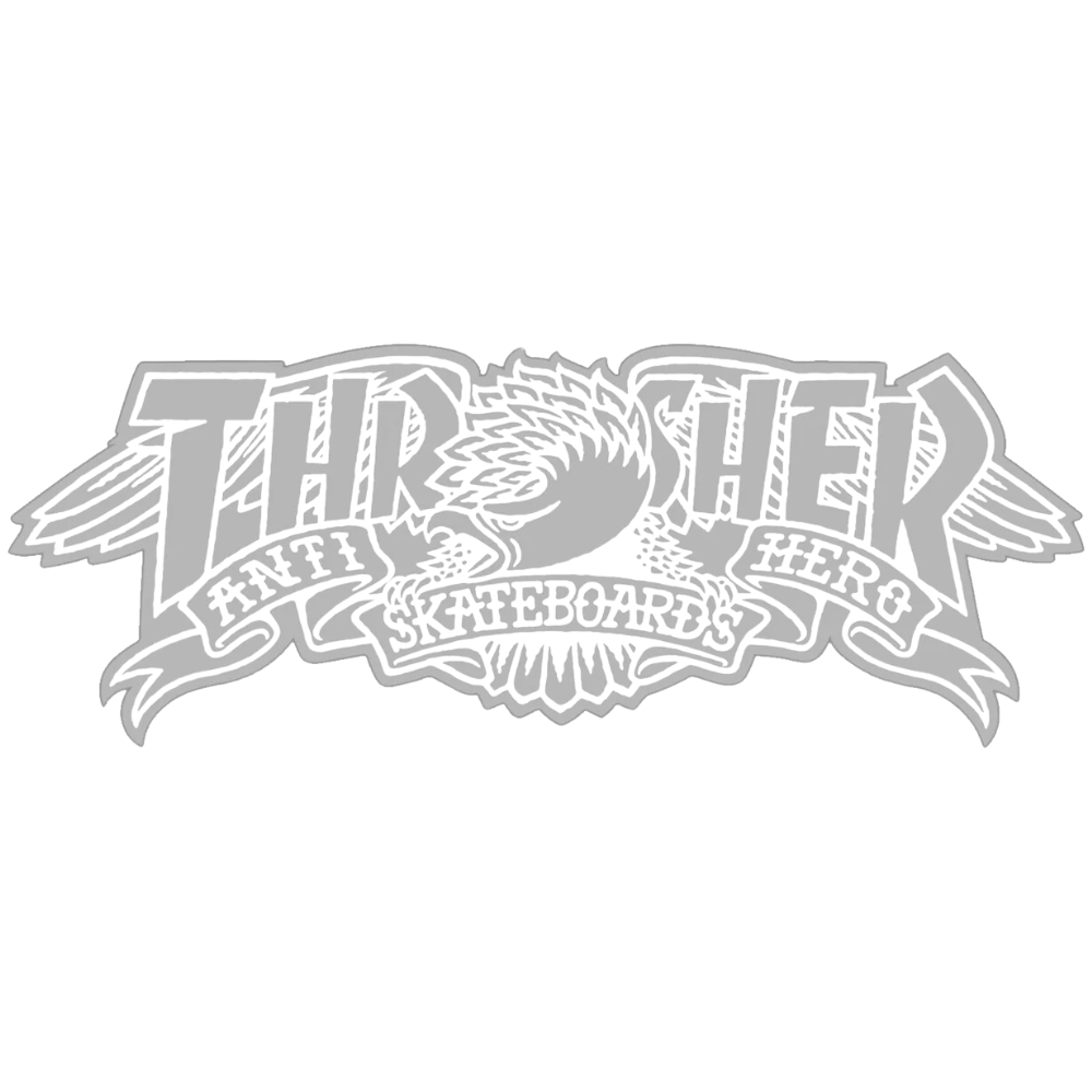 Der Thrasher X Antihero 8 "Aufkleber ist perfekt, um Ihren Sachen eine persönliche Note zu verleihen. Dieser große Aufkleber zeigt das legendäre Thrasher Magazine X Antihero Skateboards Artwork und ist ideal, um Ihr Skateboard, Laptop oder andere Lieblingsartikel einzufügen.