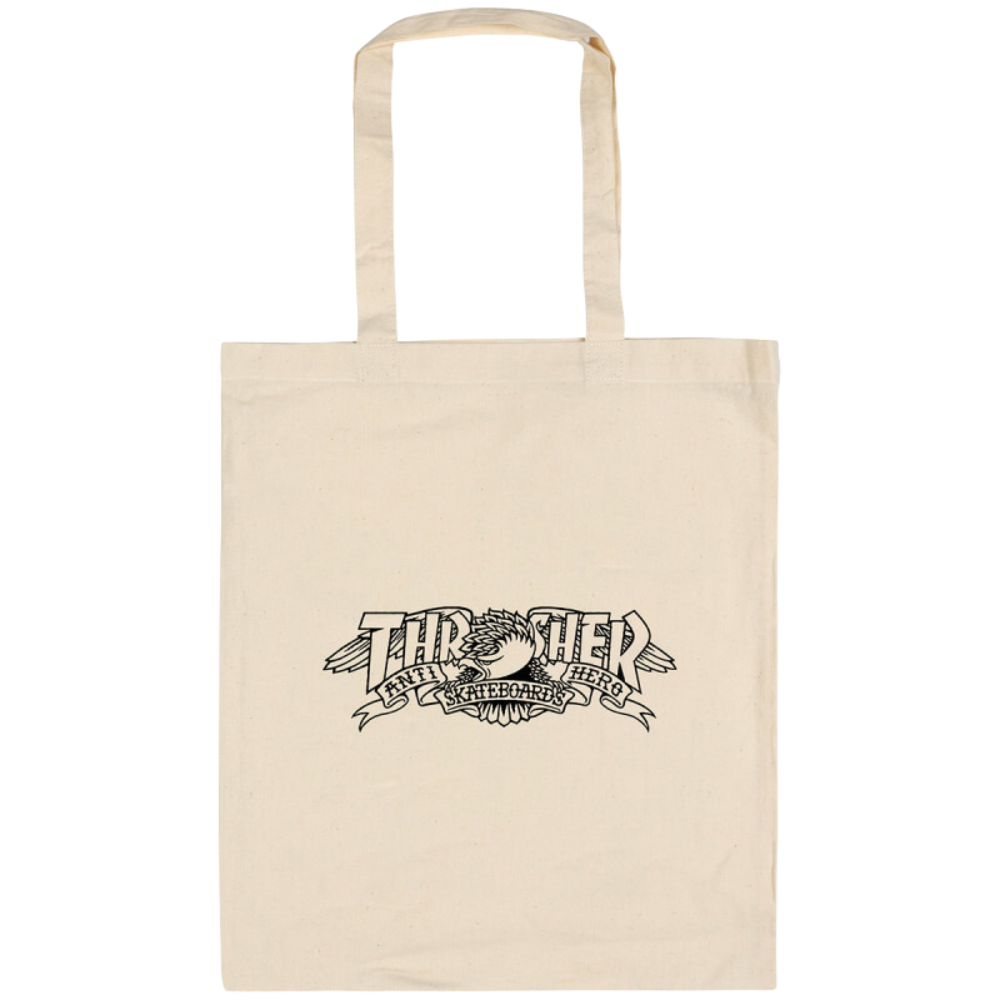 Die Thrasher x Antihero Tote Bag Natural ist eine praktische und vielseitige Tasche für jede Gelegenheit. Diese geräumige Tasche bietet genug Platz für all deine täglichen Essentials, egal ob du auf dem Weg zu einer Skatesession bist oder Besorgungen machst. Mit dem kultigen Thrasher Magazine x Antihero Skateboards Artwork strahlt diese Tasche einen coolen und authentischen Skatestyle aus.