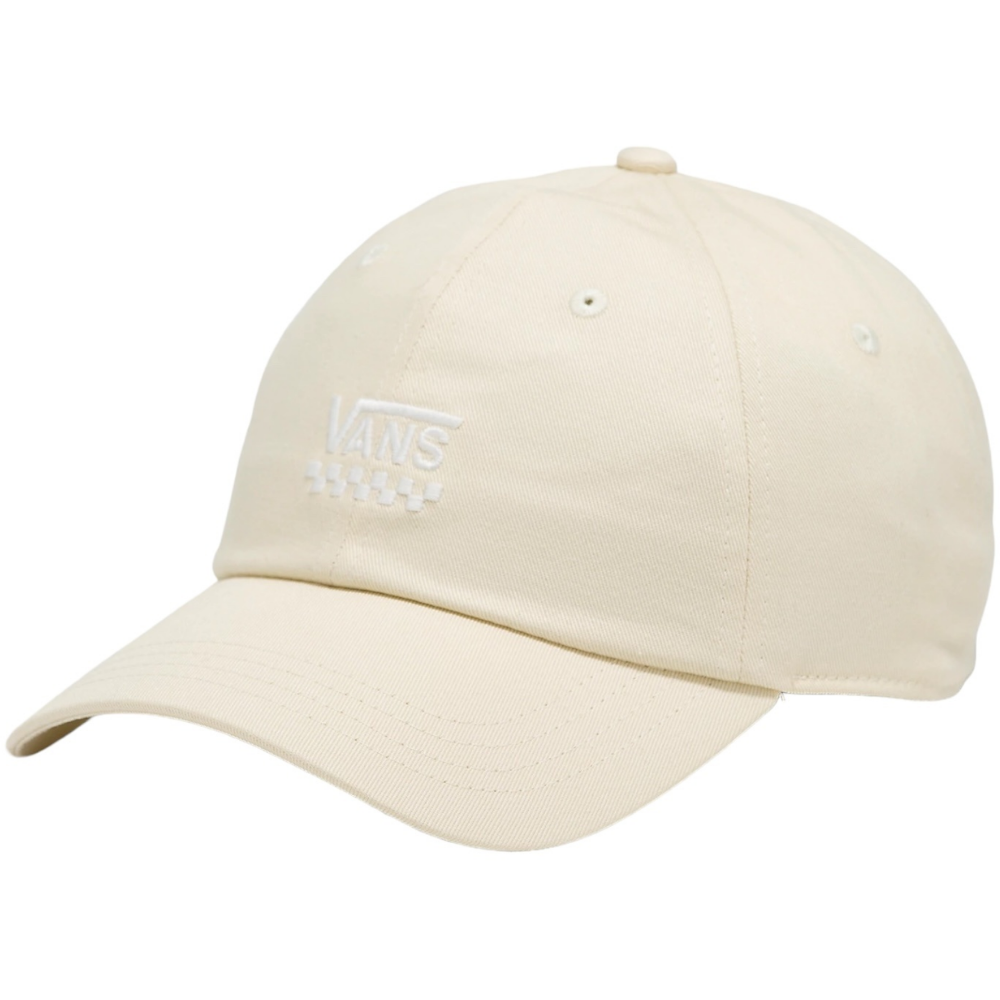 Die Vans Court Side Curved Bill Jockey Almond ist eine Baseballkappe aus Baumwolltwill mit einer kleinen, dezenten Stickerei auf der Vorderseite.