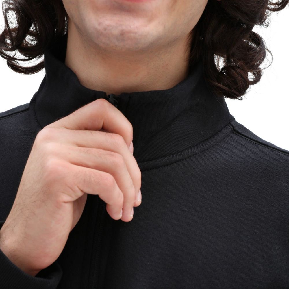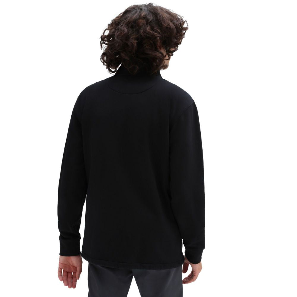 De Vans Versa QZip Sweater Black is gemaakt van 88% katoen en 12% polyesterfleece. Deze pullover is een waterafstotende trui met kwart rits. Voorzien van een kangoeroezak, het Vans-logo links op de borst en een checkerboardprint op beide mouwen. De Vans Versa sweater is gemaakt van waterafstotend Storm Cotton fleece.