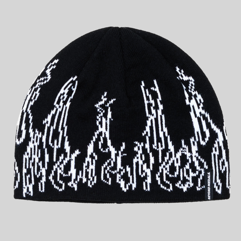 Verleihe deinem Winterlook ein Statement mit der Beyond Medals Warning Beanie Black. Sie ist eine Jacquard-gestrickte Mütze.