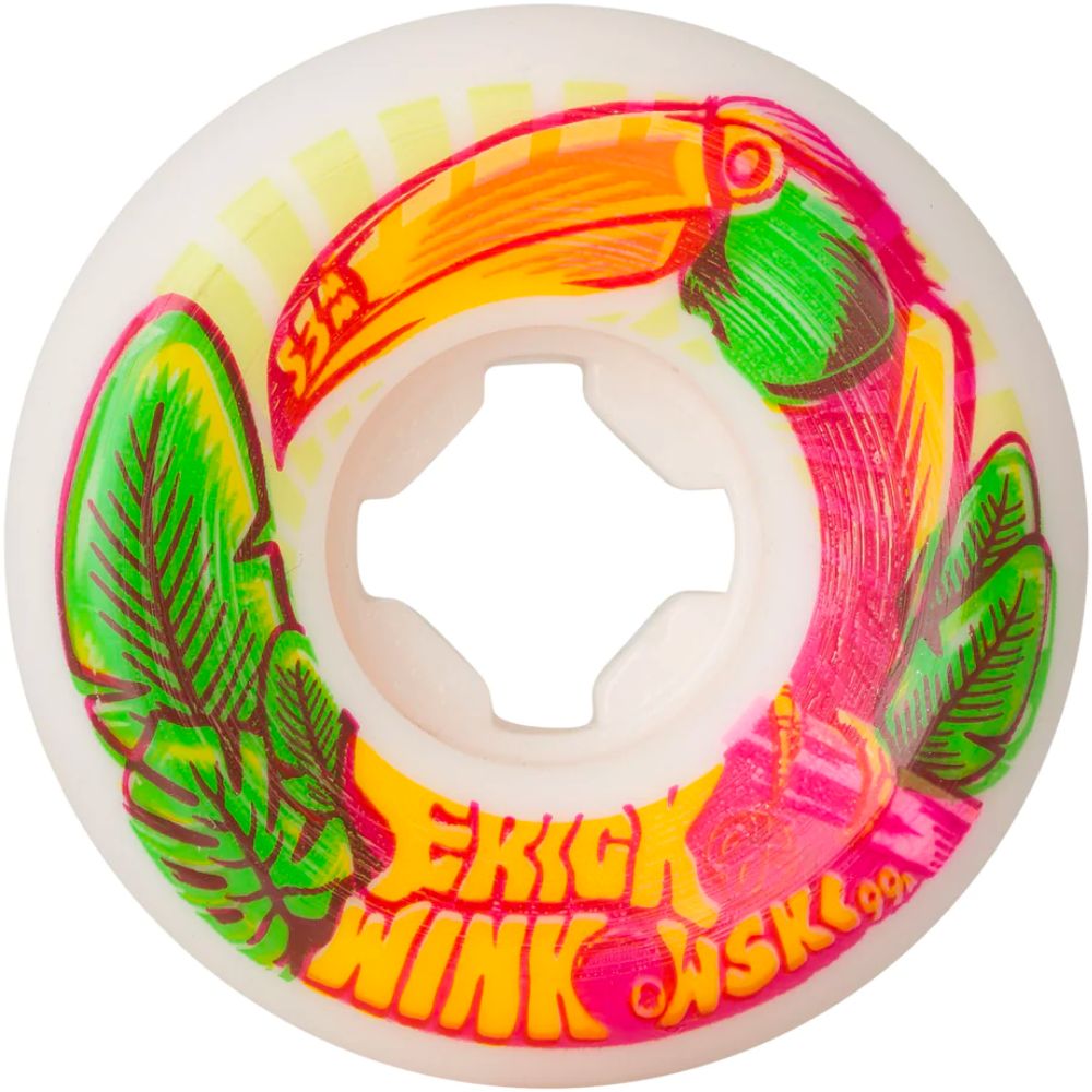 De OJ Winkowski Tropics Original Mini Combo 53mm 99a Skateboard Wheels is een awesome paar Mini Combo wielen van OJ. Deze heeft een asymmetrische vorm met een afgeronde achterkant en een conische voorkant met een breder rijvlak voor meer lock-in op grinds en controle op alle terreinen. Gemaakt van kwaliteitsvol urethaan.