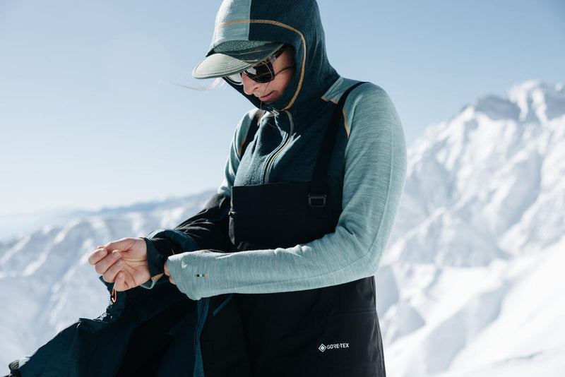 - 100% Merinowolle mit Interlock-Strick für Komfort, Atmungsaktivität, Wärmeregulierung und Geruchsresistenz