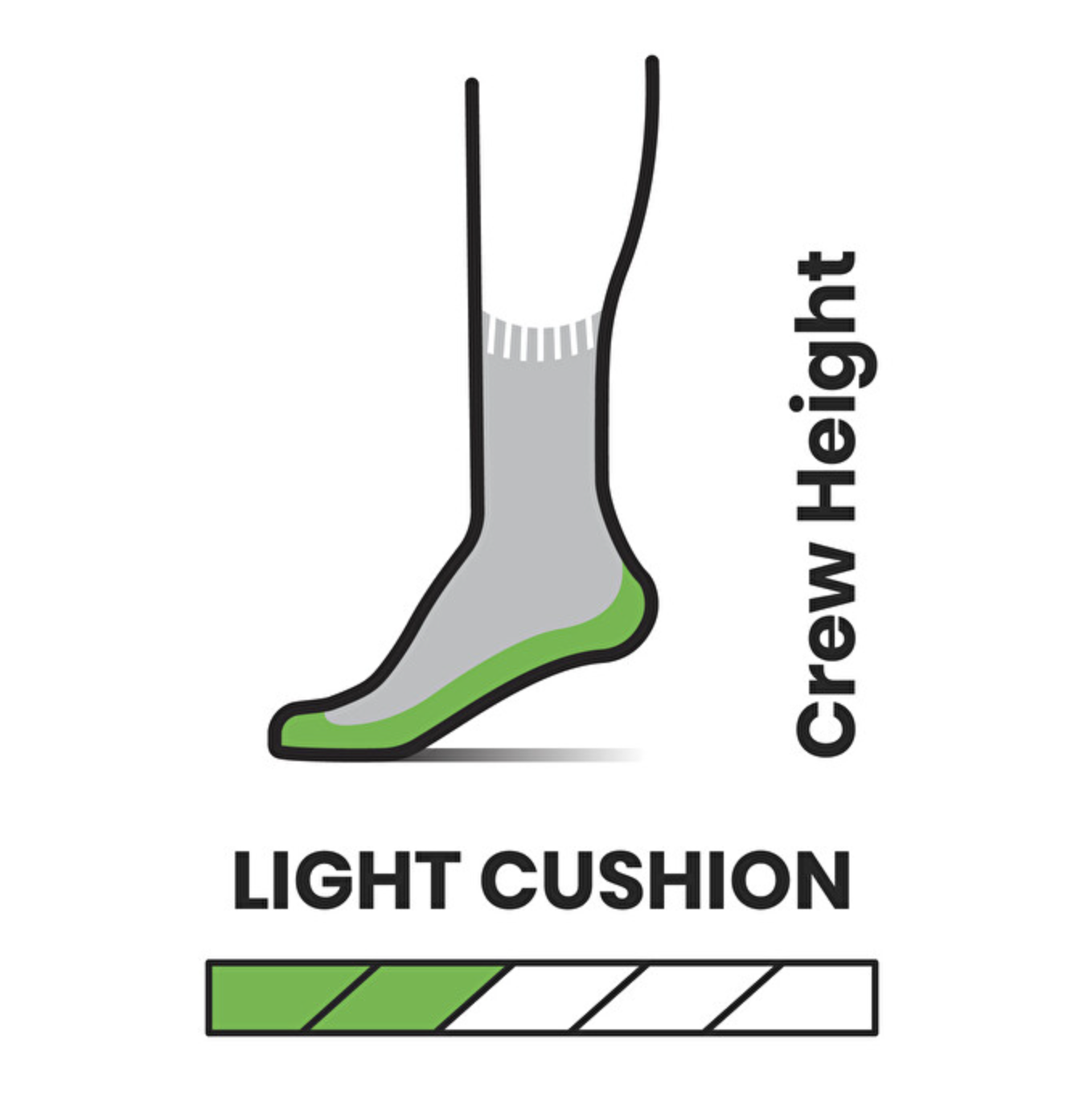 Die Smartwool Womes Light Cushion Crew Hiking Socks mit Icy Range Aufdruck für Damen bieten alle Vorteile von verantwortungsvoll gewonnener Merinowolle (Temperaturregulierung, Geruchsresistenz, Feuchtigkeitsmanagement) und dazu noch Komfort und Haltbarkeit. Sie haben eine leistungsfähige Passform, zusätzliche Atmungsaktivität, leichte Dämpfung genau dort, wo du sie brauchst, und eine Virtually Seamless™-Spitze. Und das alles verpackt in einem einzigartigen Kate Zessel Design, das Sie am liebsten einrahmen würden - aber lassen Sie den Rahmen sicherheitshalber zu Hause. :)