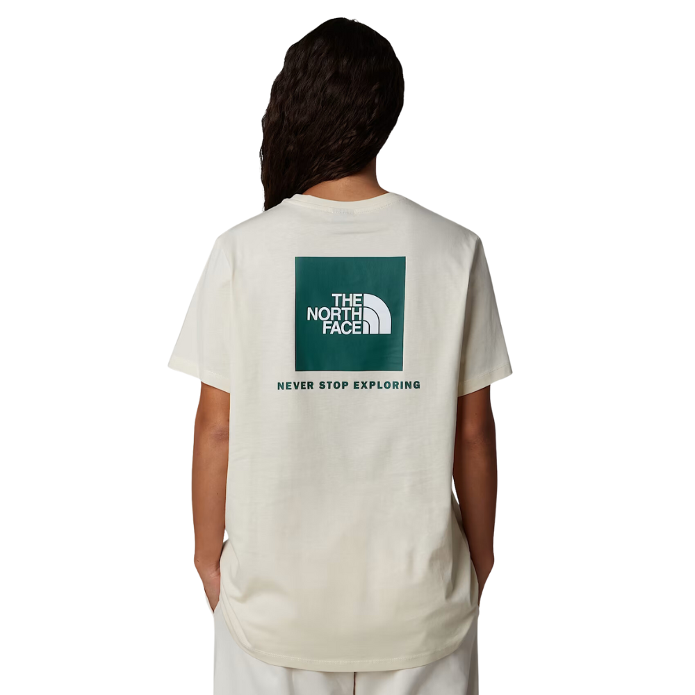 Das The North Face Womens Relaxed Redbox T-Shirt White Dune/Evergreen ist ein super vielseitiges Sommershirt. Aus weicher, klimabewusster Baumwolle gefertigt, ist es zudem unglaublich bequem.
