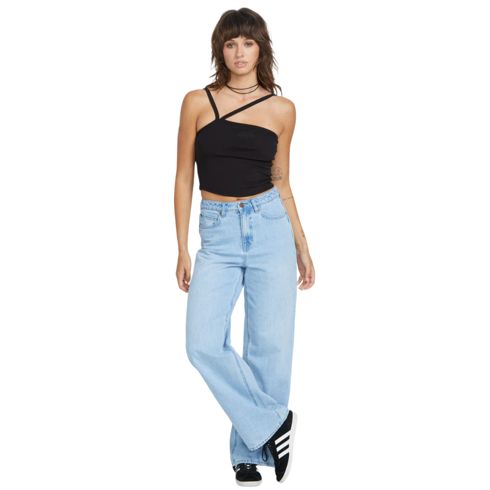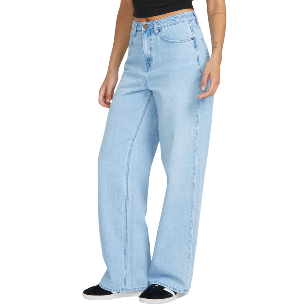 Die Volcom Womens Stoned Boyfriend High Rise Jeans Blue Bird ist eine mühelos coole Denim-Boyfriend-Jeans aus 100% Baumwolle mit schmeichelhafter hoher Taille, Reißverschluss und einer Innennaht von 52 cm.