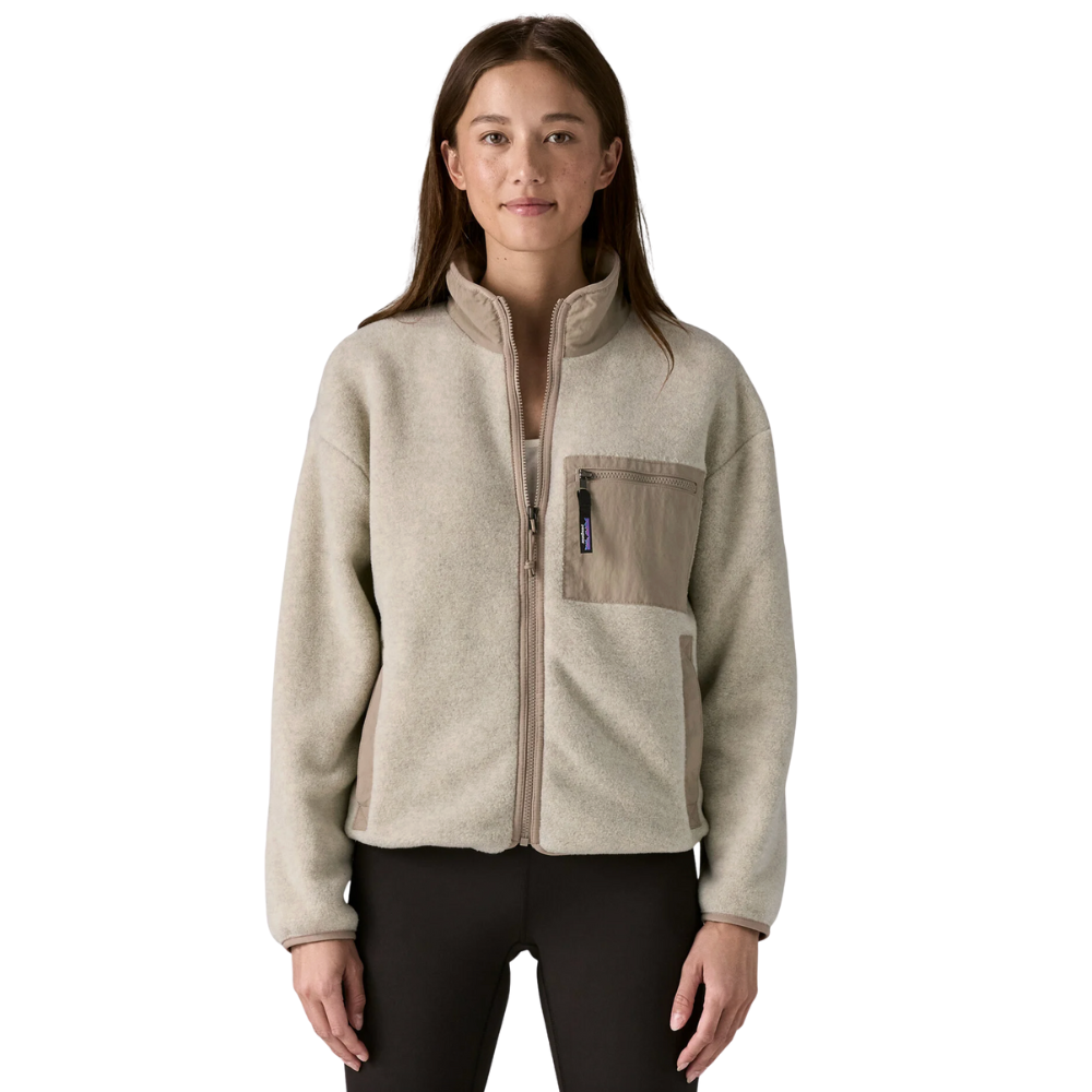 Die Patagonia Womens Synchilla Fleece Jacket Oatmeal Heather/ Seabird Grey ist eine lässige Jacke mit Kragen und durchgehendem Reißverschluss, die aus Synchilla®, 100% recyceltem Polyester und doppelseitigem Fleece besteht, um Sie warm zu halten. Hergestellt in einer Fair Trade Certified™ Fabrik.