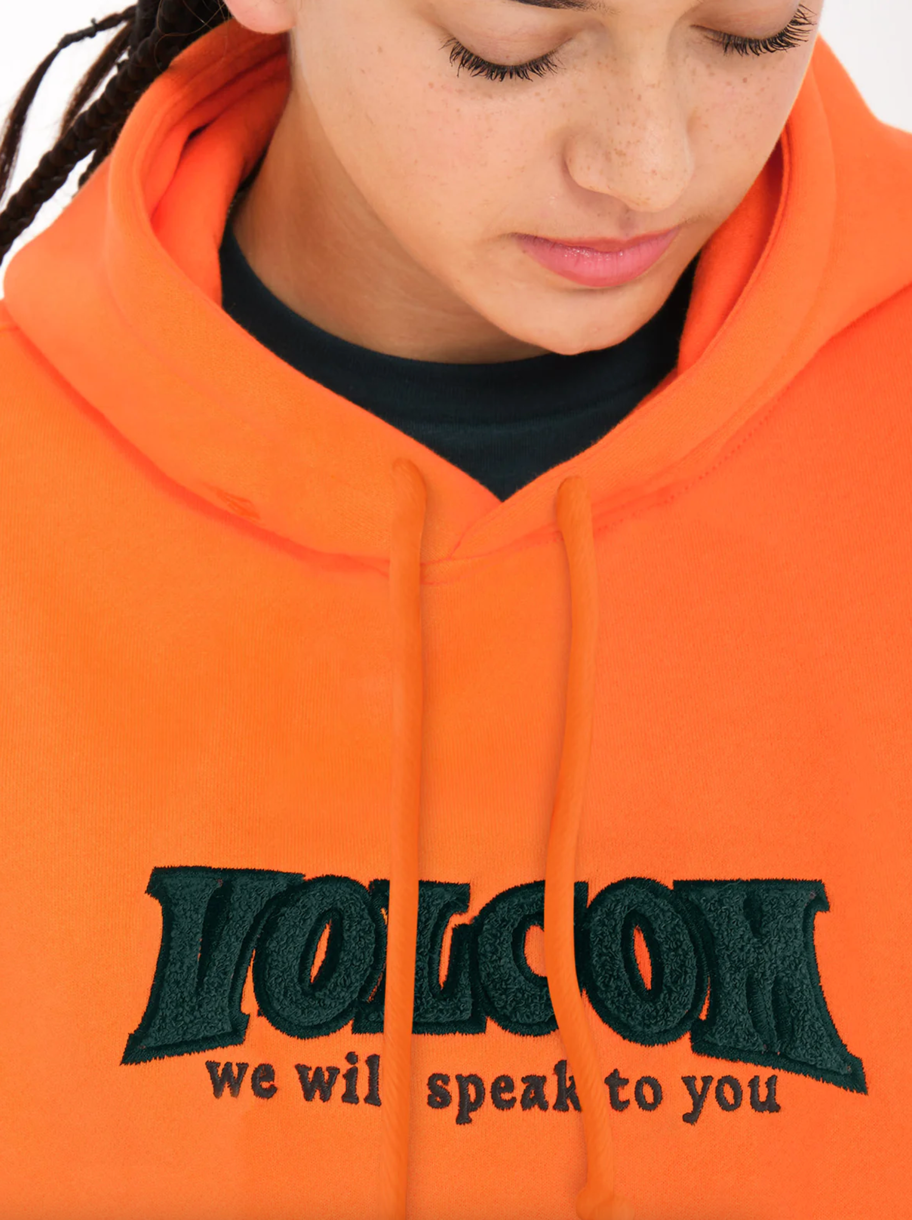 Der Volcom Womens Tripstone Hoodie Carrot ist ein echter Hingucker. Dank seiner lockeren, kastenförmigen Passform ist er super bequem.