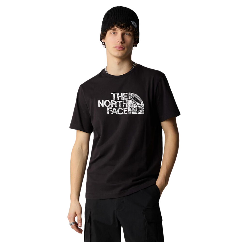Wo auch immer das Abenteuer dich hinführt, das Woodcut Dome T-Shirt TNF Black von The North Face aus reiner Baumwolle ist das Sommer-Essential, das zu allem passt, was du trägst.