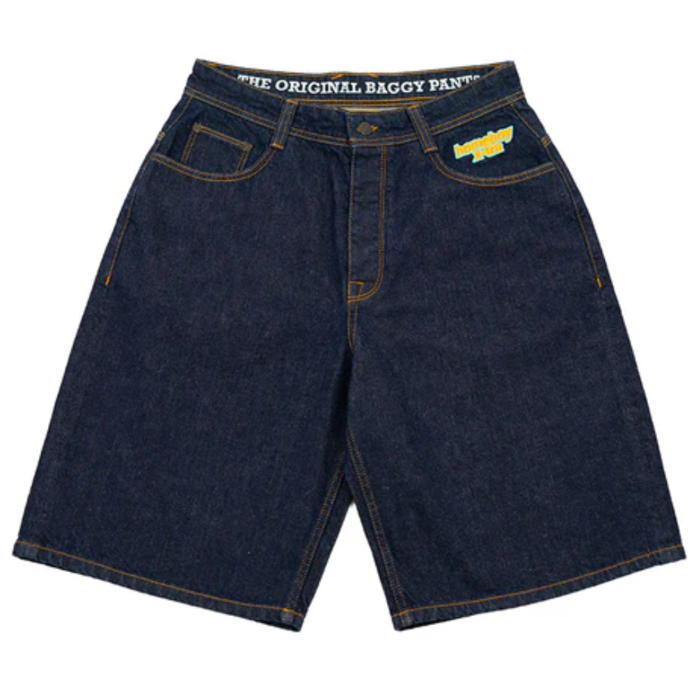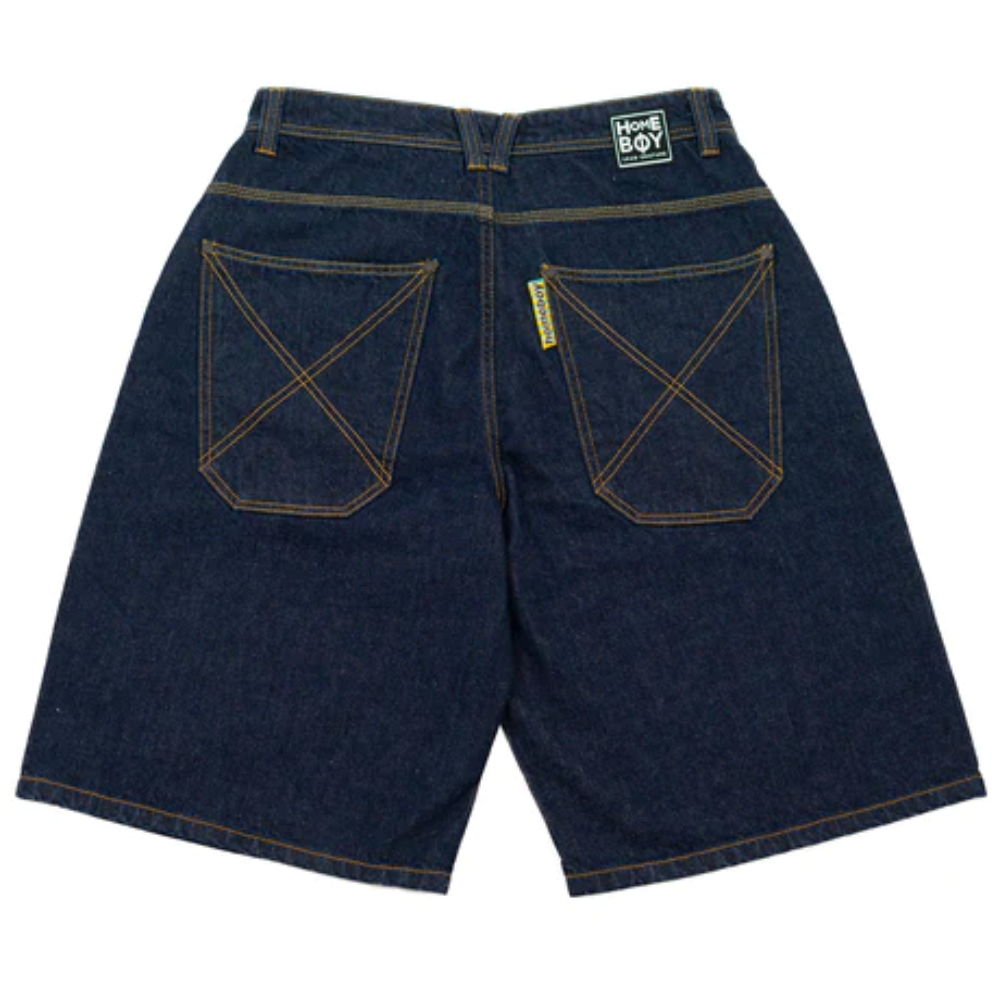 Die Homeboy X-tra Monster Baggy Shorts Indigo sind Monster Baggy Shorts für den Sommer von Homeboy. Sie hat ein weit geschnittenes Bein und verjüngt sich leicht zum Ende des Beins hin. Sie liegt an der Hüfte eng an und der Schritt ist nur geringfügig länger als bei normal geschnittenen Jeans. Die Beine enden knapp über den Knien.