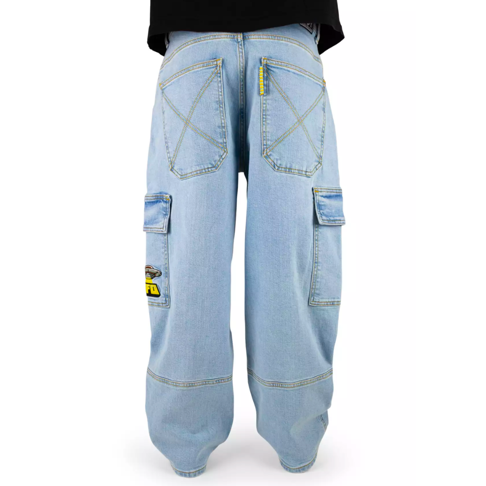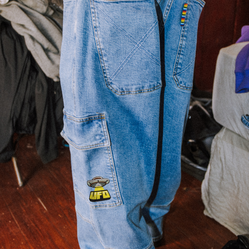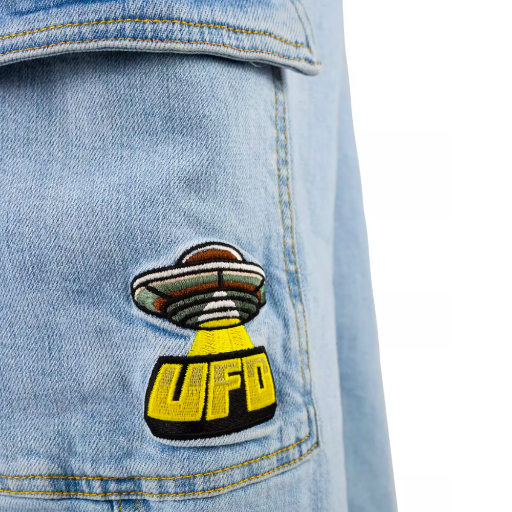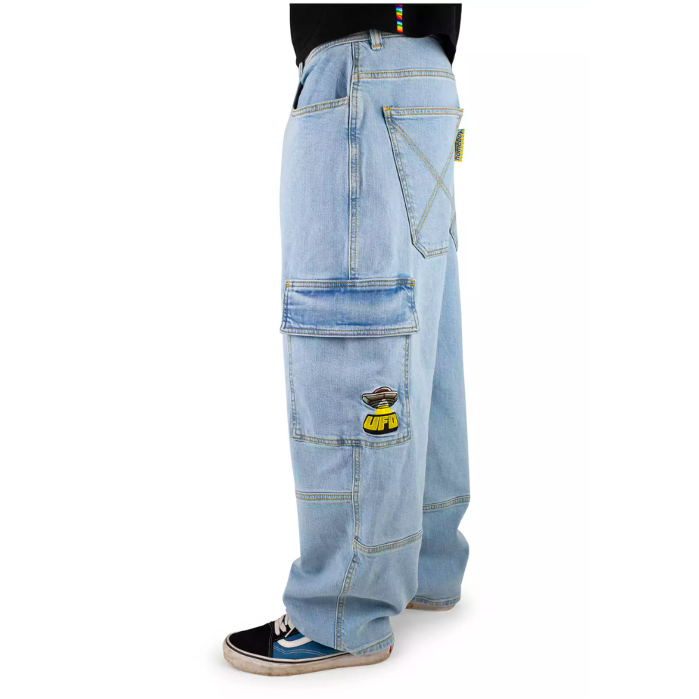 Die Homeboy X-tra UFO Cargo Denim Moonist eine Hommage an die kultigen Baggy-Hosen der 90er Jahre in einem neuen Look. Diese moderne Interpretation bietet denselben weit geschnittenen Komfort mit authentischen Details, darunter spezielle UFO-Stickereien und ein Rainbow Fly-Tab.